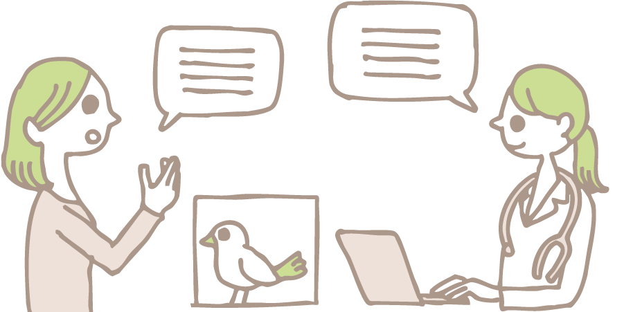 当院では、飼育方法から病気の治療・看護の仕方まで丁寧にご説明します。家族の一員として迎えた鳥や小動物のためにできること。鳥にとって、小動物にとって、ご家族にとって最善の方法を一緒に考えていきましょう。お気軽にご相談ください。