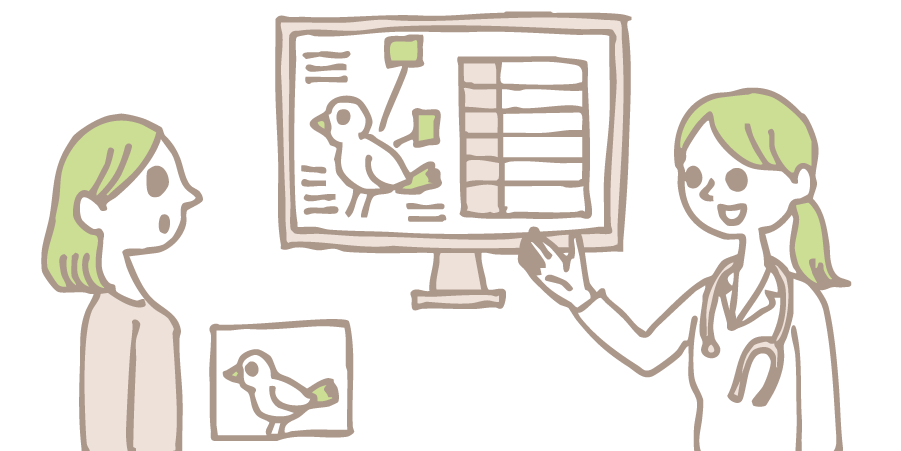 鳥さんは元気そうに見えても病原体(病気を引き起こすウイルス、細菌、寄生虫など)を隠し持っていることがあります。また、X線検査や血液検査をすることで一見何も症状がないように見えても内臓に異常があることがわかることもあります。
